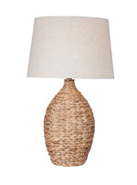 The Kingston Table Lamp combines coastal design with boho aesthetics, featuring a natural base that brings an earthy, relaxed vibe to any room. The linen tapered drum-style shade enhances the soft, inviting light, creating a warm atmosphere. This lamp's effortless blend of organic materials and contemporary style makes it a versatile addition to various interior designs. The Kingston Table Lamp adds a touch of charm and functionality, perfect for bringing a coastal-inspired, bohemian flair to your space.