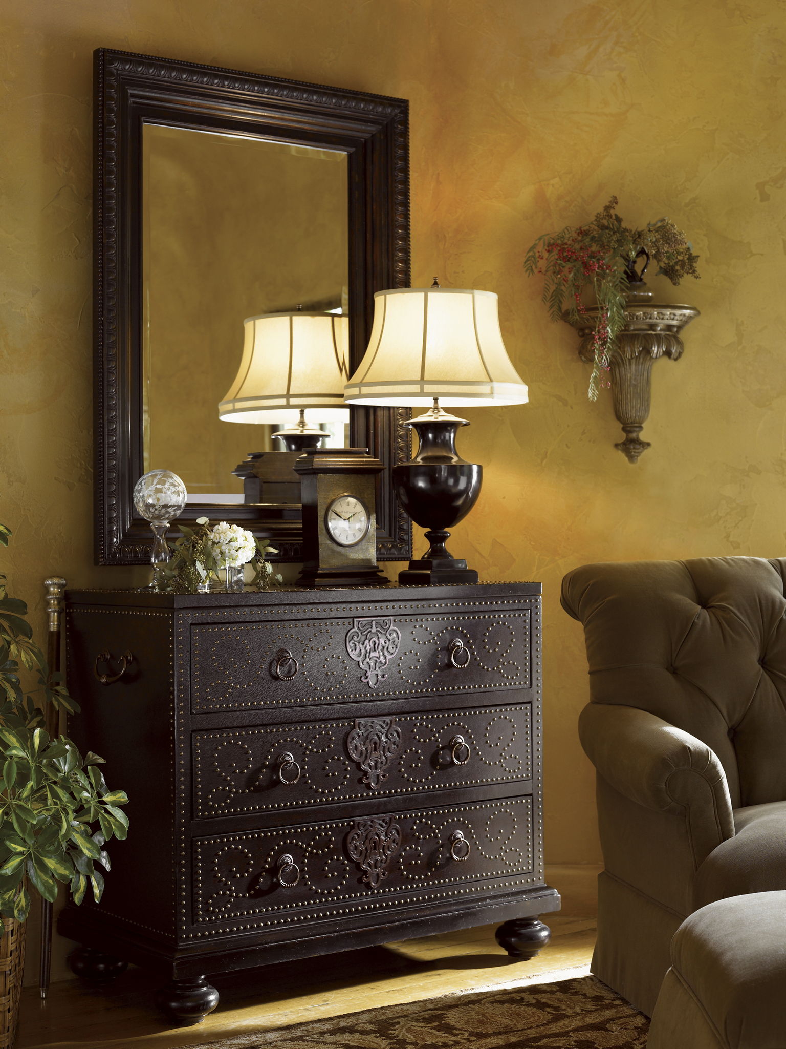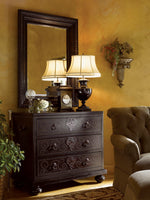 Unit price perThe relaxed traditional styling of Kingstown finds its inspiration in classic British Colonial design, with a hint of campaign and a touch of safari. Designs reflect the sense of a well-traveled life, and items hand-selected during journeys around the globe. At first glance, the rich Tamarind finish appears black, but offers glimpses of gold and crimson through its aged finish. Accents include hammered copper, leather-clad silhouettes, and zebra-patterned hair-on-hide. Experience the excitement of discovery with Kingstown from Tommy Bahama Home.