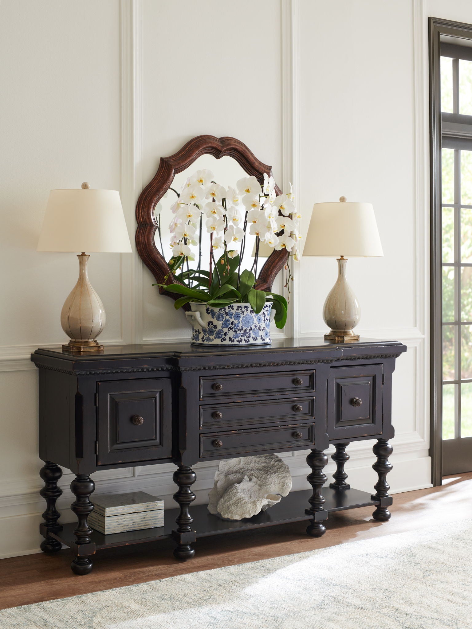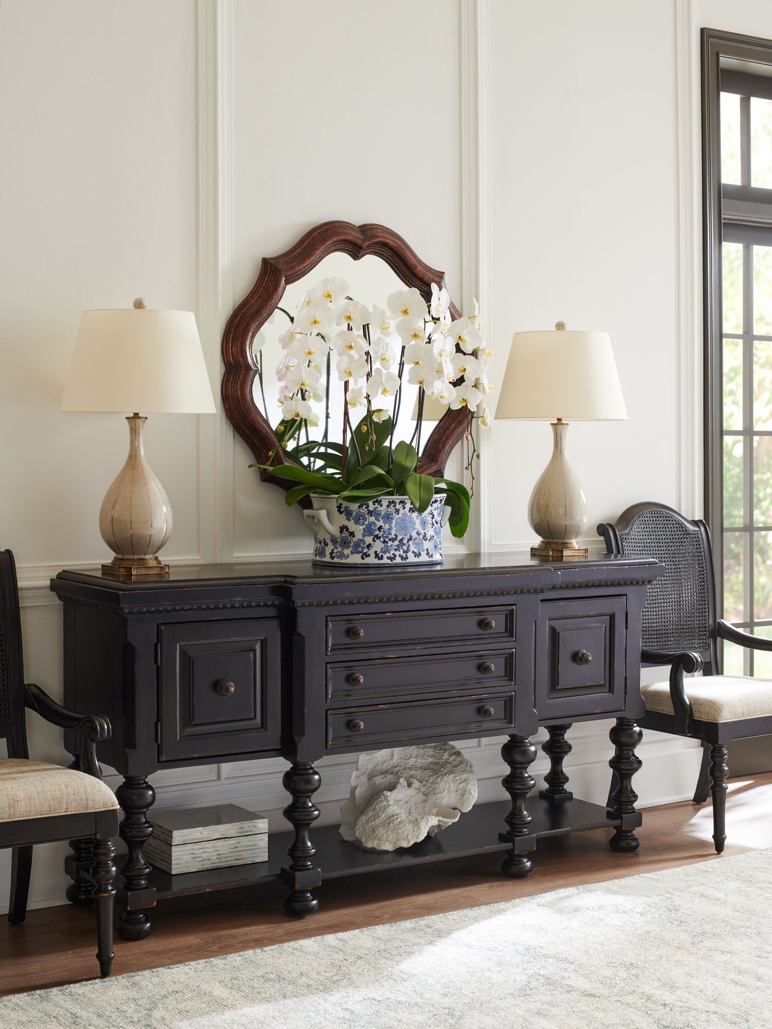 Unit price perThe relaxed traditional styling of Kingstown finds its inspiration in classic British Colonial design, with a hint of campaign and a touch of safari. Designs reflect the sense of a well-traveled life, and items hand-selected during journeys around the globe. At first glance, the rich Tamarind finish appears black, but offers glimpses of gold and crimson through its aged finish. Accents include hammered copper, leather-clad silhouettes, and zebra-patterned hair-on-hide. Experience the excitement of discovery with Kingstown from Tommy Bahama Home.