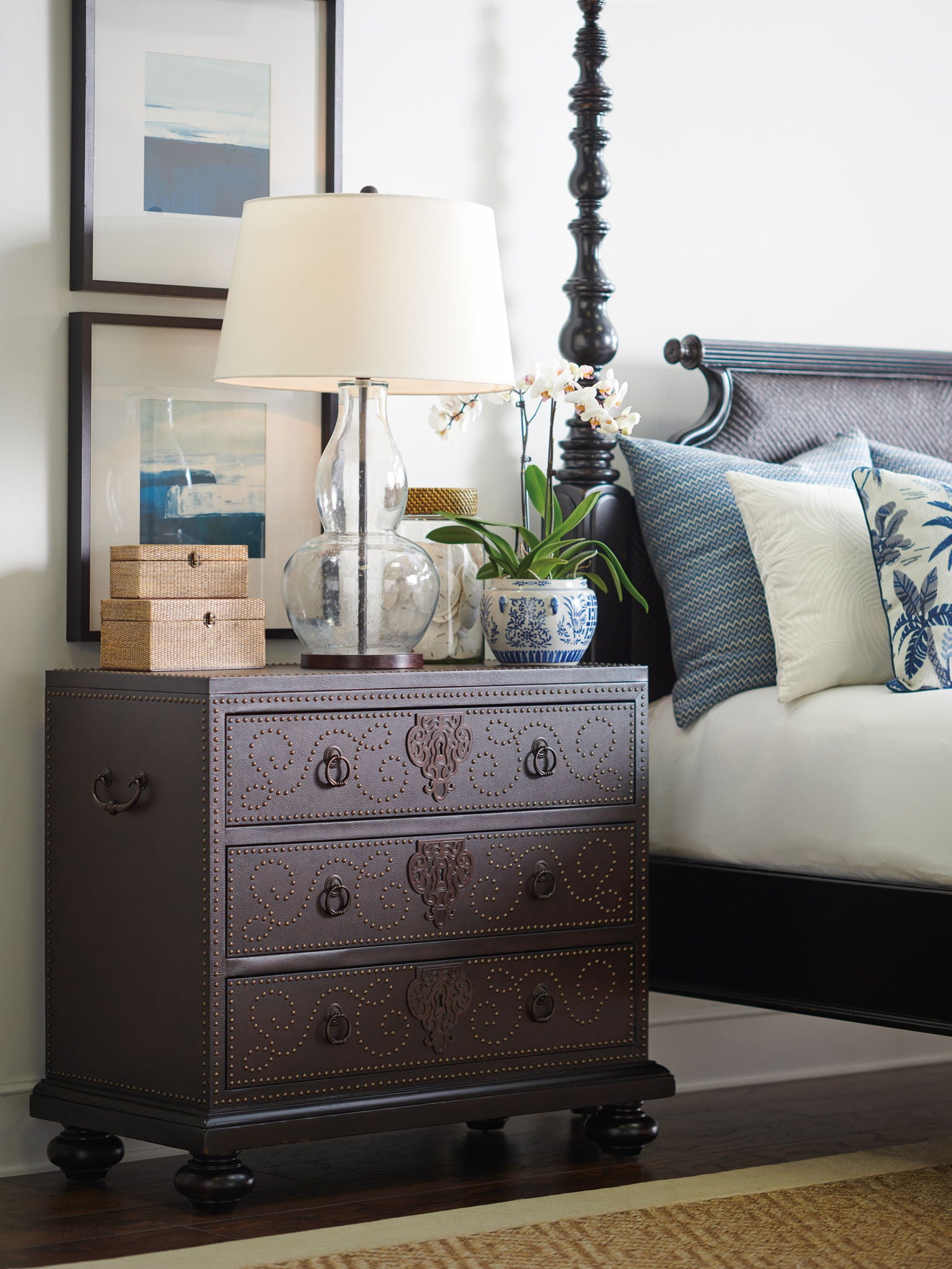 The relaxed traditional styling of Kingstown finds its inspiration in classic British Colonial design, with a hint of campaign and a touch of safari. Designs reflect the sense of a well-traveled life, and items hand-selected during journeys around the globe. At first glance, the rich Tamarind finish appears black, but offers glimpses of gold and crimson through its aged finish. Accents include hammered copper, leather-clad silhouettes, and zebra-patterned hair-on-hide. Experience the excitement of discovery with Kingstown from Tommy Bahama Home.
