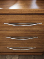 - 3 Full-extension Self Closing Drawers, Canted Front Design, Plinth Base..