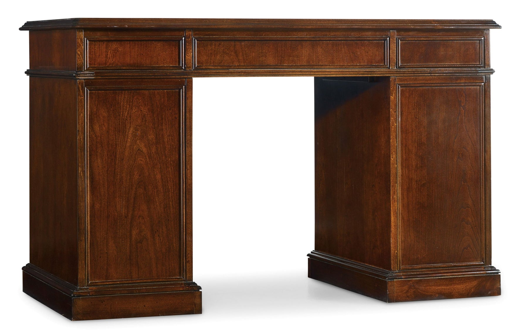 Unit price perThis desk is crafted using hardwood solid with cherry veneers, it features a bonded leather top.