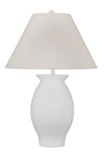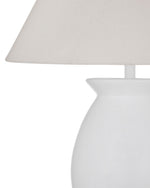 The Koler Table Lamp boasts a sleek, ceramic lamp body with a glossy white finish that exudes a clean and simple elegance. Its classic, rounded vase shape presents a timeless profile that is effortlessly versatile, suitable for a variety of decorating styles. The lamp is crowned with a complementary light beige lampshade, which adds a soft, diffused light to any room, enhancing the lamp's serene and polished aesthetic.