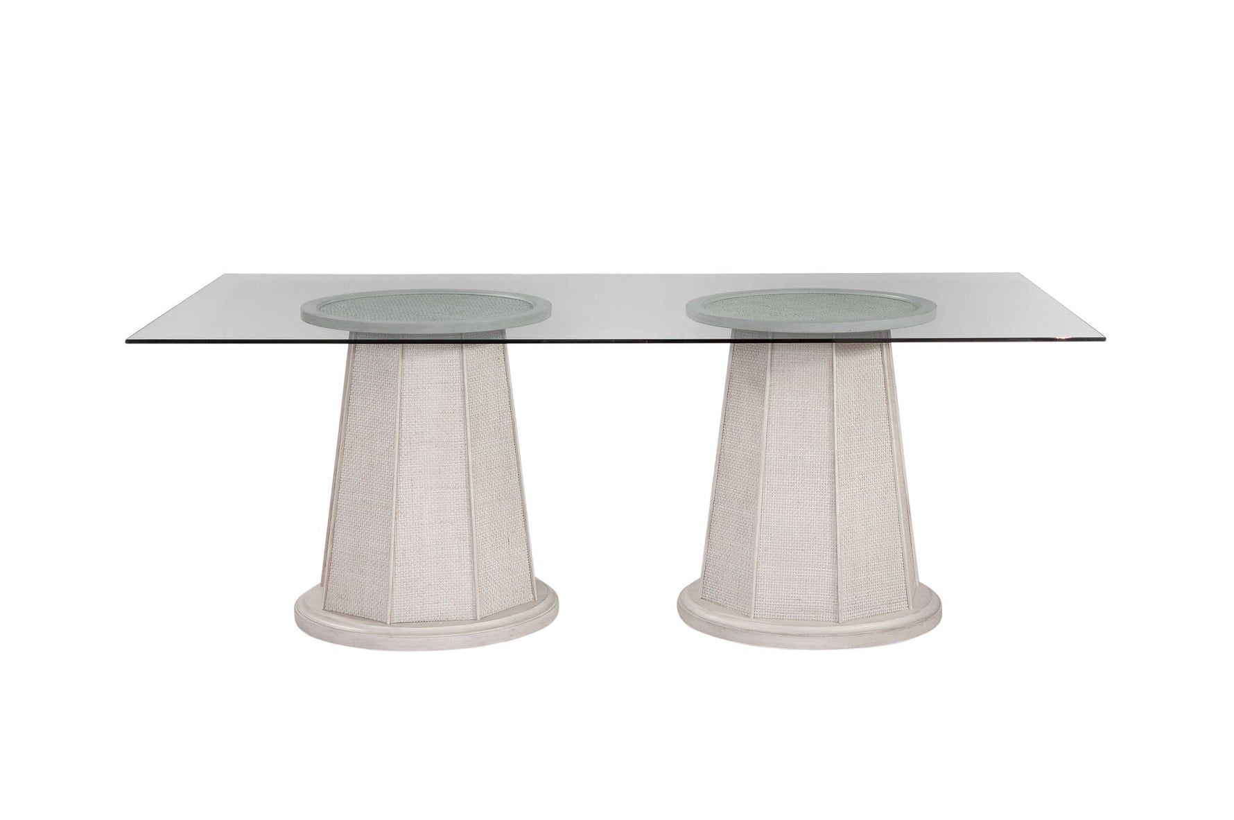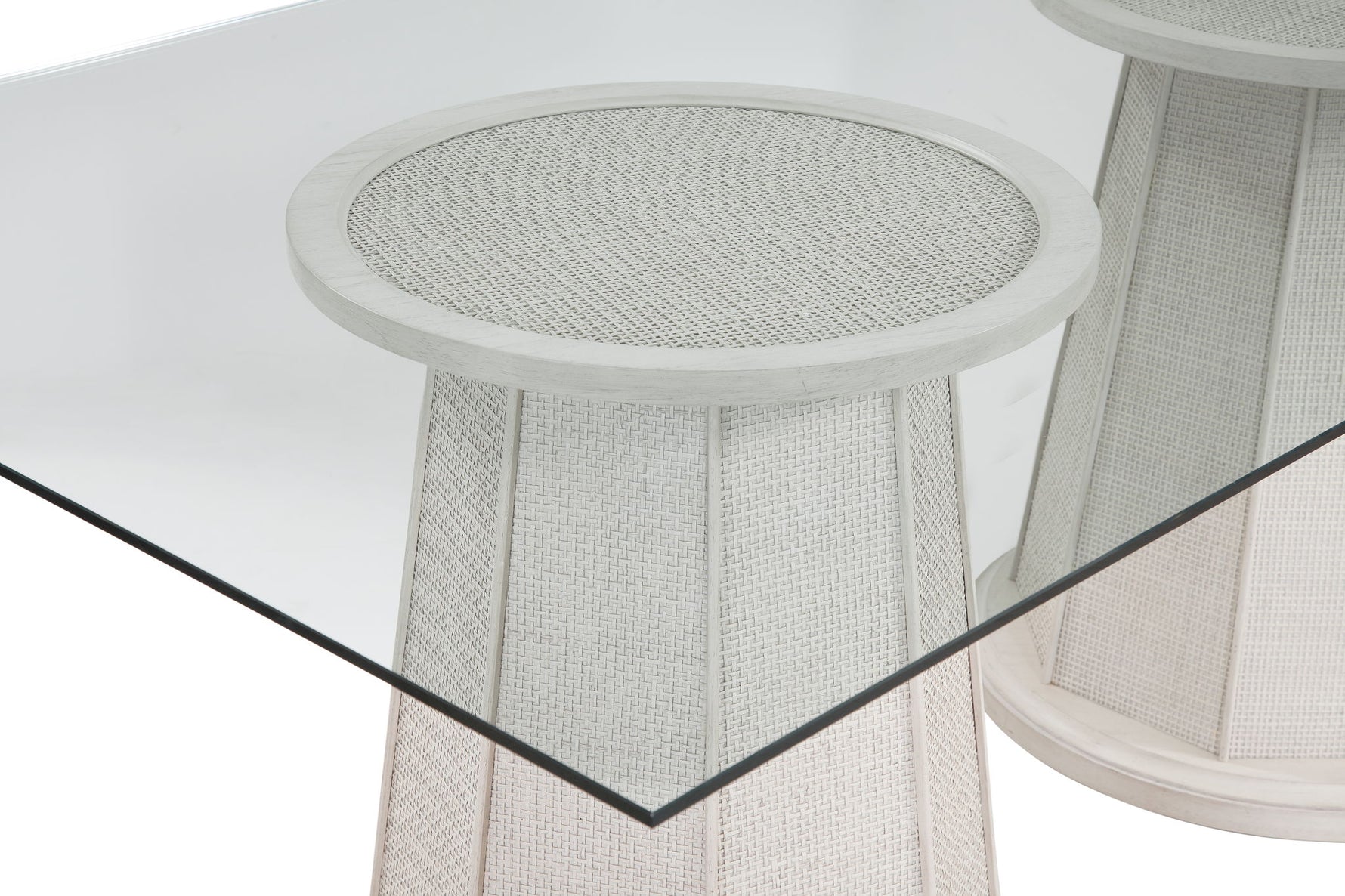 • The double pedestal base features white-washed cane detailing
