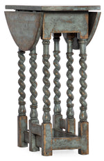 With chic curvy legs and a chunky base, the Prause Gate Leg Table is reminiscent of European antiques brought to this country by immigrants during the time of America's westward expansion. This character-filled piece is also practical. Put the drop leaves down for a snug fit next to the sofa, but raise them up to use this piece for an extra table top or serving surface. Finished in the dreamy Blue Bonnet, a soft blue accent finish with a rubbed patina and distressing. Taking the next step in creating a Hill Country family of collections, Hooker Furniture has introduced LaGrange. The anthology of bedroom, living room, dining room, occasional and home office furniture is inspired by the Hill Country region of Texas, including the town of LaGrange, one of the stops made by the Hooker Furniture design team in search of inspiration. The collection includes heavily distressed oak and hickory surfaces, extensive carving and scroll work, aged metals, sedimentary stone and primitive textiles. Each piece has a unique story to tell, while still retaining the authentic American character of the original collection. LaGrange is updated with a fresh new personality, brought to life by four distinctive finishes and modern conveniences for the lifestyles of today.