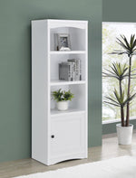 Put finishing touches on a charming media center in your living room with this tower bookcase. Perfect to flank your TV stand, it adds easy storage and display space. Its mix of cabinet and open shelving is versatile and stylish, with three shelves, two of them adjustable, on top of a one-door cabinet with one adjustable shelf. Trim details add subtle character and freshness to the overall look. A neutral finish complements surrounding decor and offers stylish appeal in your living room.