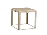 • A 24-inch Square Silver Travertine Top Nests Inside A Hand-burnished Silver Leaf Frame To Create A Totally Custom Look