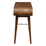 Crafted From Rich Burl Veneer And Java Wood, This Distinctive Console Table Effortlessly Brings A Mid-century Modern Charm To Your Space. Its Hollow Interior Offers Practical Storage While Maintaining Clean Lines And Organic Curves. Accented With Brass Finished Hardware.