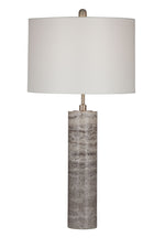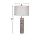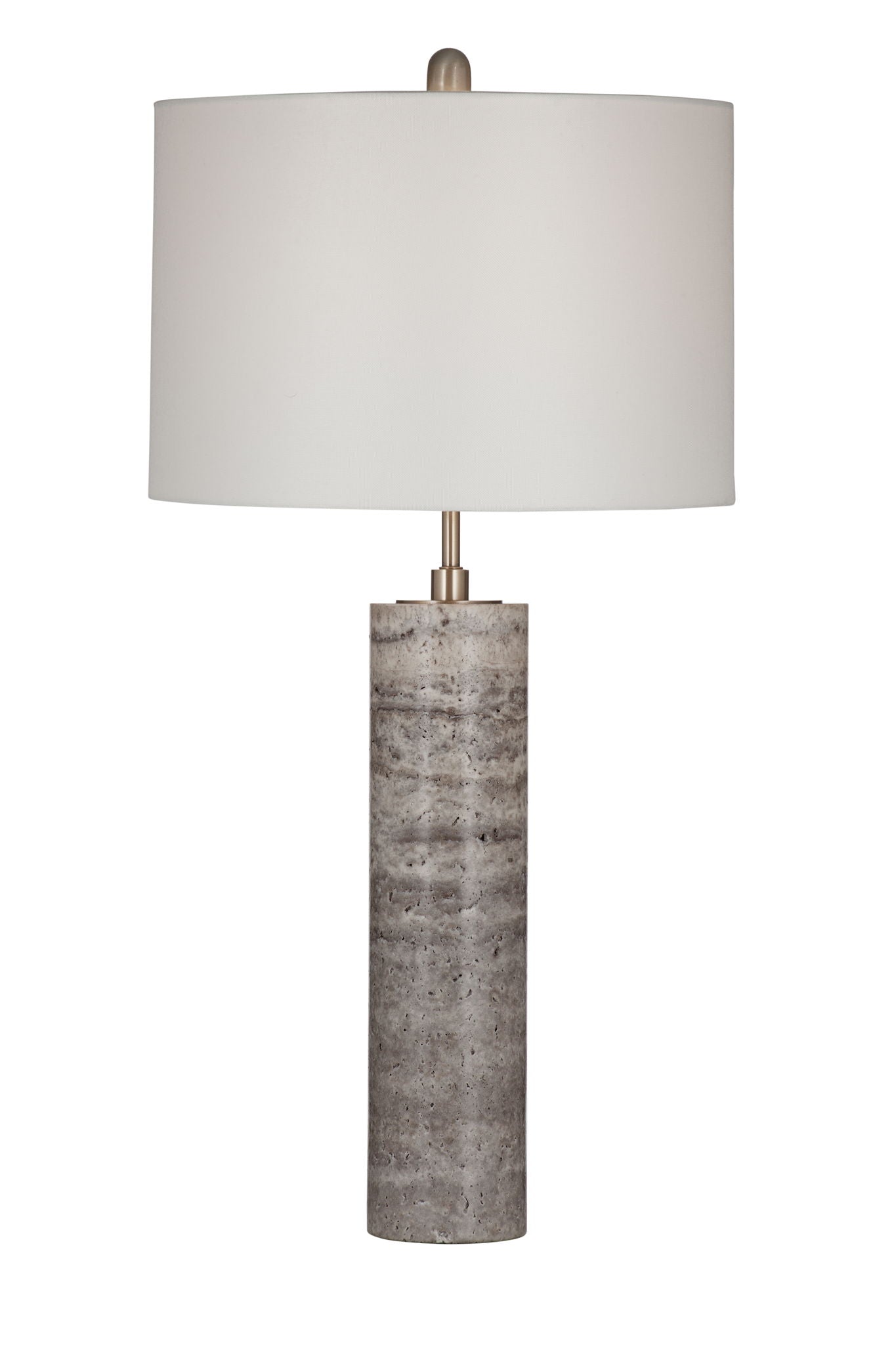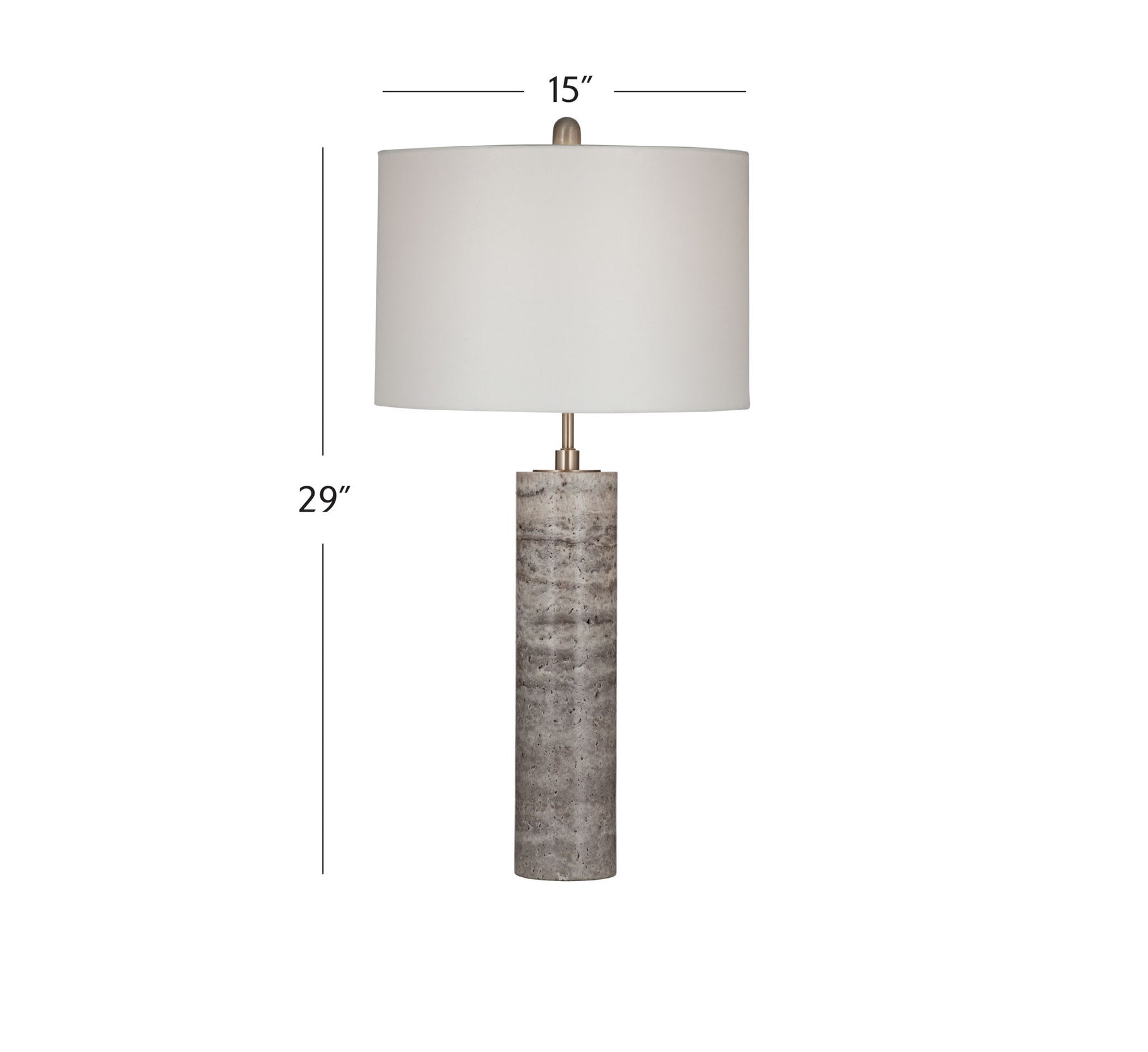 The Lillie Table Lamp is crafted of marble with a neutral drum shade.
