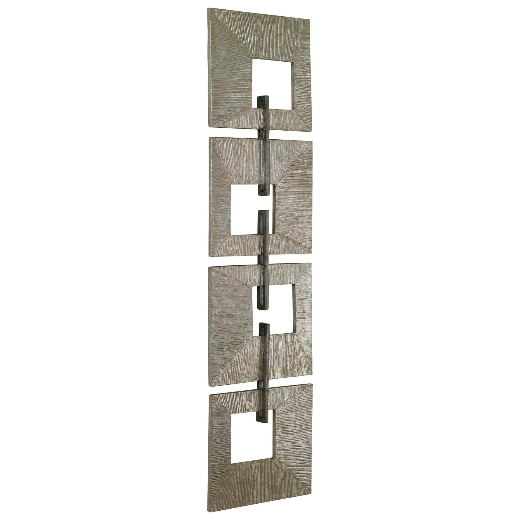 - A Textural Showpiece, The Linked Wall Panel Features Ridged Metal Sheeting In A Champagne Gold Finish Connected By Iron Bars In Heavily Aged Silver. Group Multiples Together For A More Dramatic Installation. May Be Hung Horizontally Or Vertically.