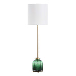 Timeless In Design, The Lois Buffet Lamp Showcases A Fluted Emerald Glass Base That's Paired With Antique Brass Plated Accents. The Round Hardback Drum Shade Is A White Linen Fabric With Natural Slubbing.