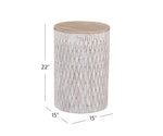 Discover the Lorenzo Accent Table, where coastal farmhouse styling meets craftsmanship perfection. Featuring a solid mango base with delicate carving and a sandblasted white-wash finish, paired with a travertine top, it's a harmonious blend of warmth and sophistication. The natural touch of mango wood and travertine creates a welcoming ambiance.