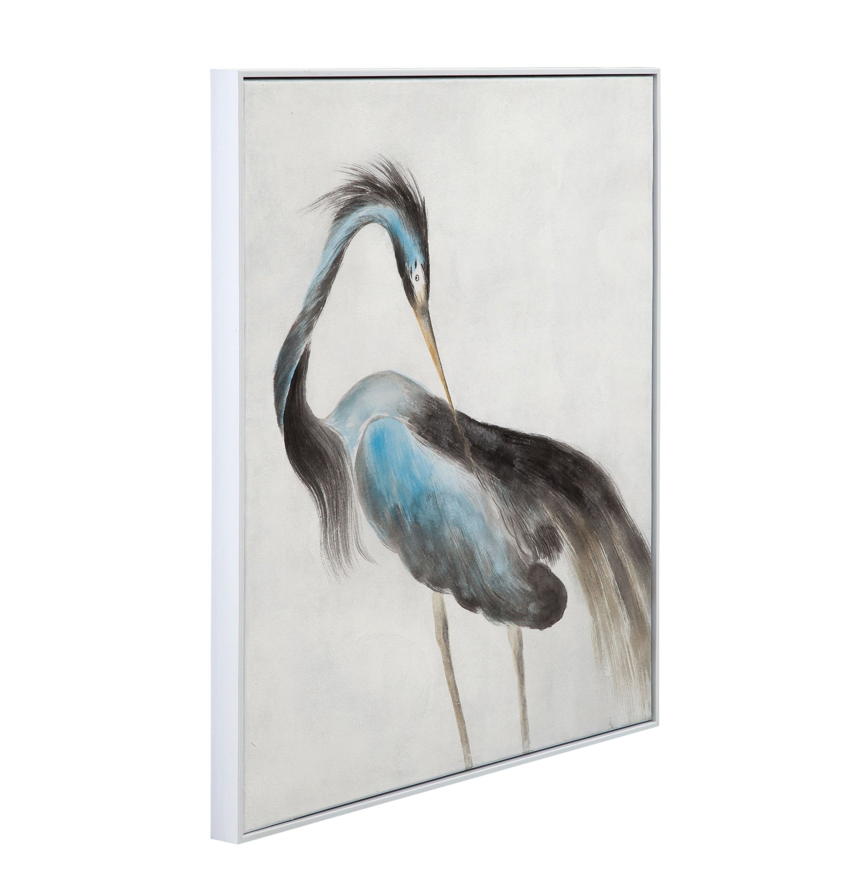 • Graceful heron design depicted in oil and acrylic for a serene, natural touch