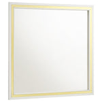 Put a glamorous finishing touch on your dresser with a modern framed mirror. Offering a polished touch of style, the mirror boasts a sleek, squared silhouette complete with a bold finish. Gleaming chrome finish trim augments the front of the frame, creating a hint of coolness in an elegant bedroom. The mirror glass is flat, offering modern style and ambiance. It's the perfect accessory for a dressing area, creating a great place for touching up your hair or choosing jewelry for the day ahead.