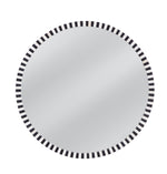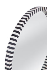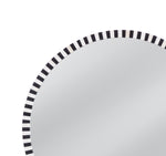 The MacArdle Wall Mirror boasts a charming round design adorned with an intricate geometric pattern, beautifully finished in black and cream. This modern boho piece adds character to any space, effortlessly blending contemporary aesthetics with artisanal flair. Crafted with quality materials, it promises durability and style, making it a delightful accent for your home decor.