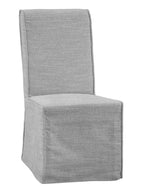 The Mackie Dining Chair brings a touch of timeless elegance to your dining space. Wrapped in a faux slipcover with linen-like performance fabric in a soothing dove color, this chair combines classic style with modern functionality. The exaggerated welt-detailing adds a sophisticated touch, while the four casters ensure easy mobility, allowing you to move it effortlessly around your dining room. Whether hosting a formal dinner or enjoying a casual meal, the Mackie Dining Chair promises comfort and style in every gathering.