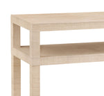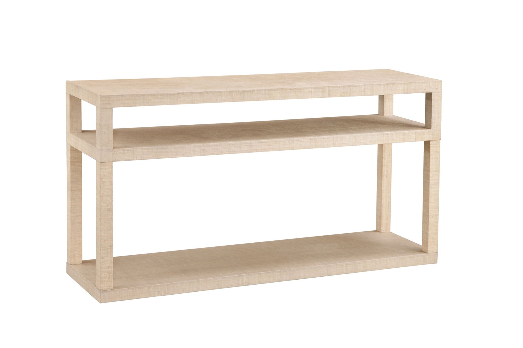 Crafted with a solid wood frame wrapped in raffia, the Magarao Console embodies contemporary coastal charm. Its clear, stain-resistant top coat not only maintains its natural allure but also adds practicality to the piece. With two shelves providing ample space for displaying items, it combines functionality with aesthetic appeal. The console's clean lines and neutral beige hue ensure effortless integration into any coastal-inspired decor, enhancing the versatility of style in your home.