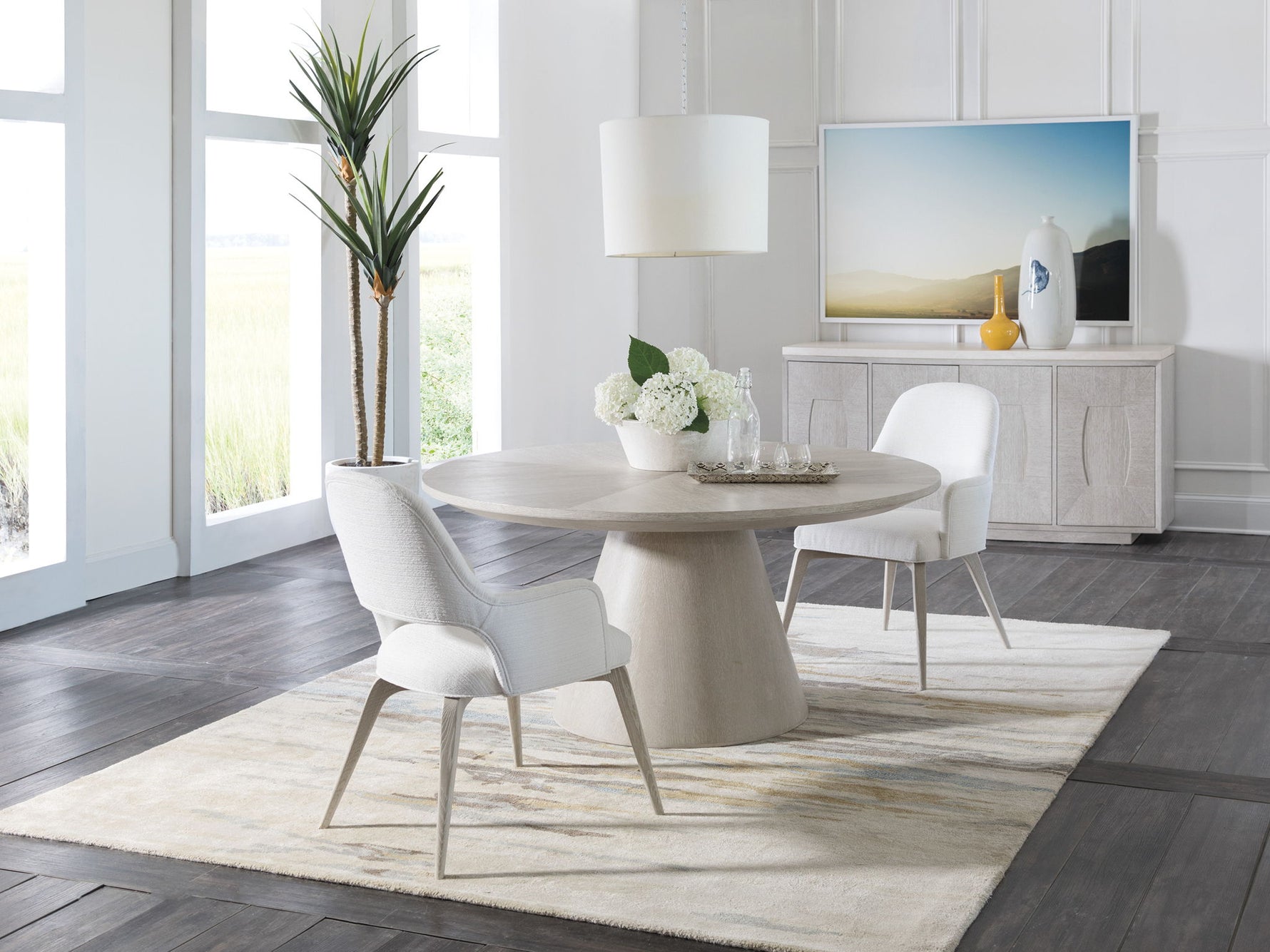 Unit price perOur largest lifestyle collection was conceived to inhabit modern environments in both coastal and mountin settings, featuring original architectural designs dressed in linear quartered white oak veneers in a soft, champagne taupe liimed in an ivory ceruse. Complimentary element include leathered Anticato marble tops, stunning organic hardware in bright nickel, and metalwork clad in a slightly warm silver leaf finish.
