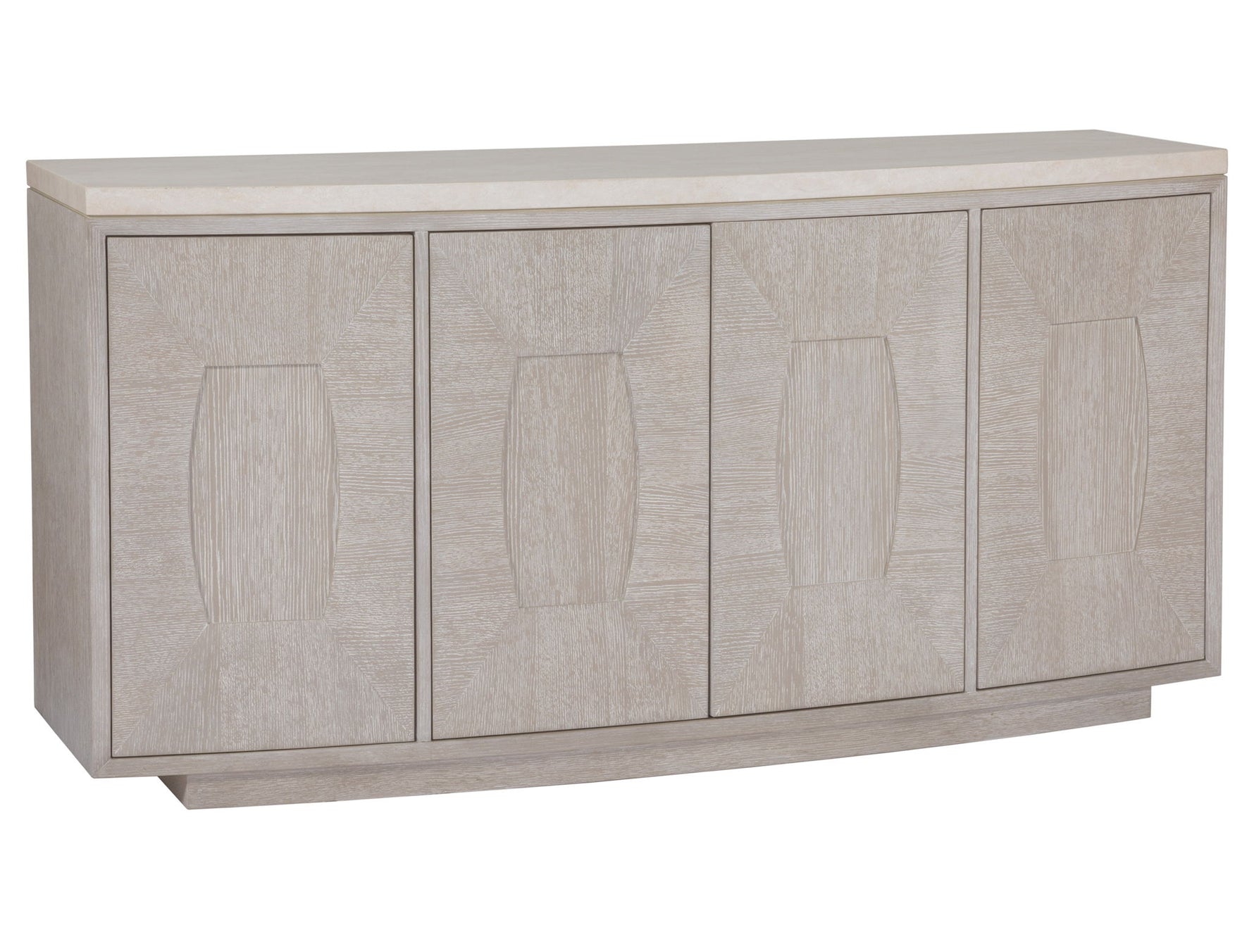 Unit price perOur largest lifestyle collection was conceived to inhabit modern environments in both coastal and mountin settings, featuring original architectural designs dressed in linear quartered white oak veneers in a soft, champagne taupe liimed in an ivory ceruse. Complimentary element include leathered Anticato marble tops, stunning organic hardware in bright nickel, and metalwork clad in a slightly warm silver leaf finish.