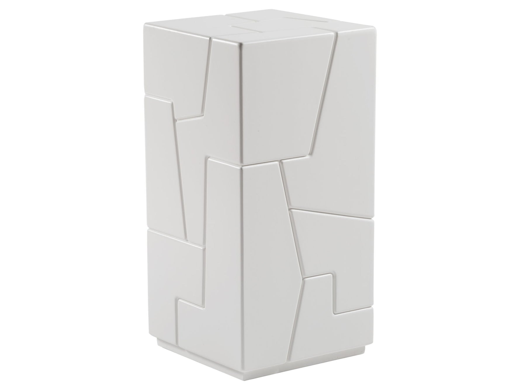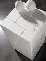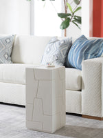 - The 12 Inch Square Spot Table Has A Visually Interesting Geometric Surface On This Boxed Cast Base In An Ivory Finish
