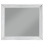 Augment a stylish bedroom setting with a transitional framed dresser mirror. It's the perfect complement to a relaxed bedroom ensemble, offering reflectivity and brightness while complementing decor. The mirror boasts a decorative frame and beveled glass, adding to its timeless character. The frame is crafted in wood with a tiered trim design that creates a stylish sense of depth. its distressed white finish is soothing and simple, complementing a variety of settings.