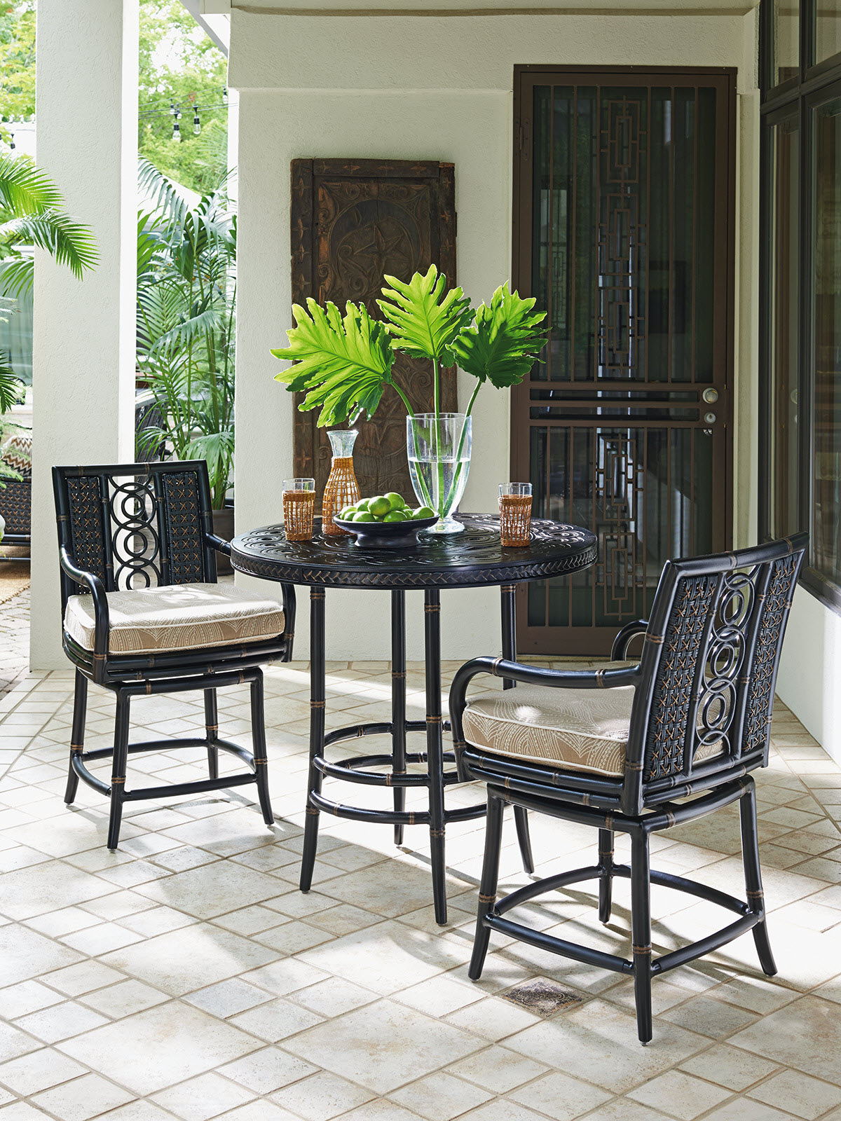 - The Bistro Table Comes Standard With A Decorative Extension Ring That Accommodates Both Counter And Bar Height Stools.the Tabletop Features A Scroll Pattern Which Ties In With The Elegant Pattern Of Interlocking Rings Featured On The Backs Of The Bar And Counter Stools Creating A Cohesive, Designer Look
