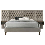 Marley - Upholstered Queen Platform Bed With Headboard Panels - Light Brown And Walnut