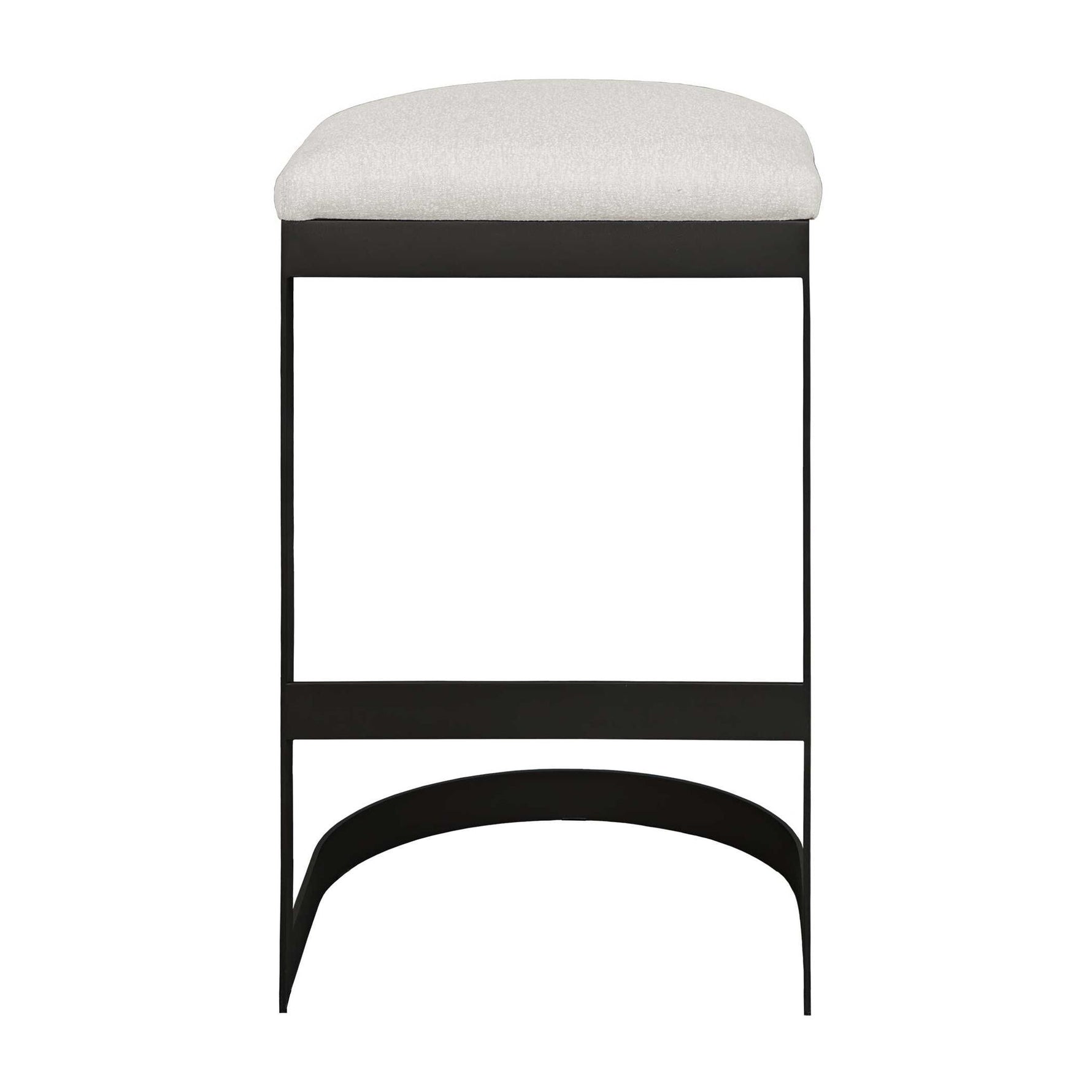 The Maude Outdoor Bar Stool Blends Industrial Style With Cozy Comfort, Featuring A Durable, Powder Coated Steel Frame In Java Black Paired With A Plush Cushion In Heavily Textured Taupe Gray Outdoor Fabric.