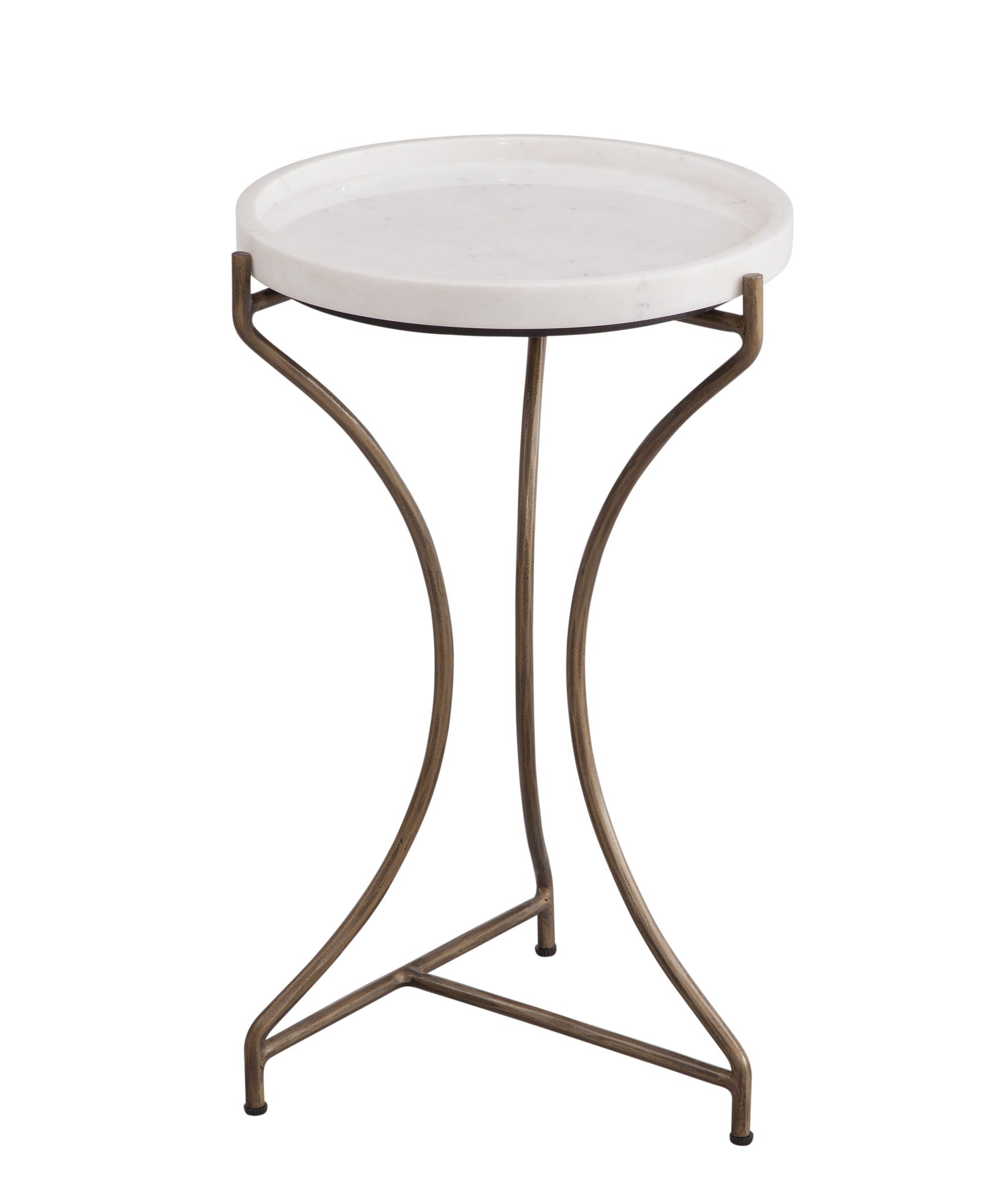 The McGowan Accent Table features a glam inspired style. Features a curved, solid iron base finished in a brushed gold. Completed with a concave, tray style, white marble top.