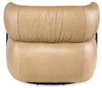 The McGuire Swivel Chair combines modern transitional style with functionality. Upholstered in premium semi-aniline leather, the chair features a barrel design, memory swivel function, and dark walnut accents. Ideal for living rooms, it offers both luxury and practicality with a comfortable foam core and sleek design.