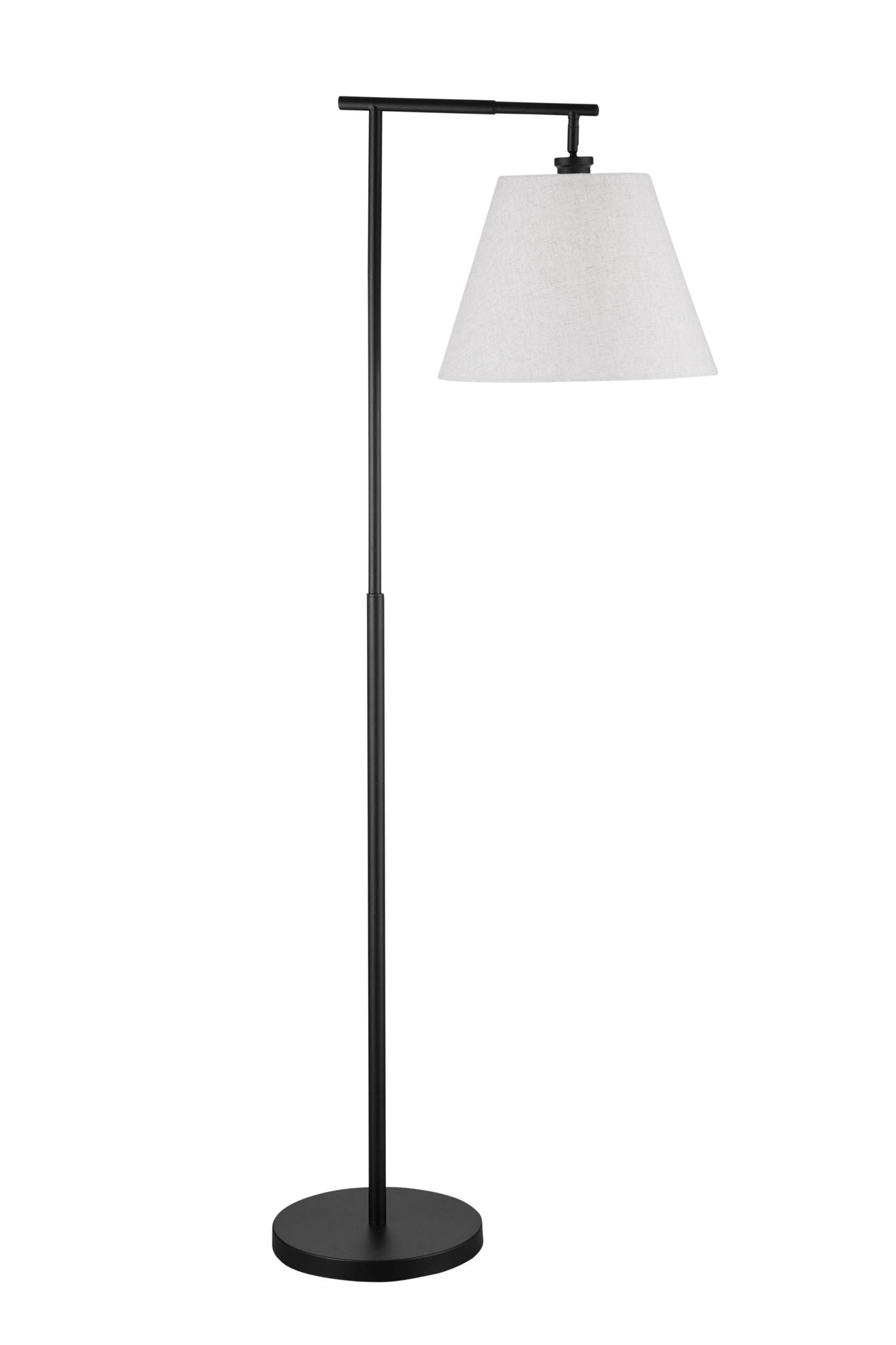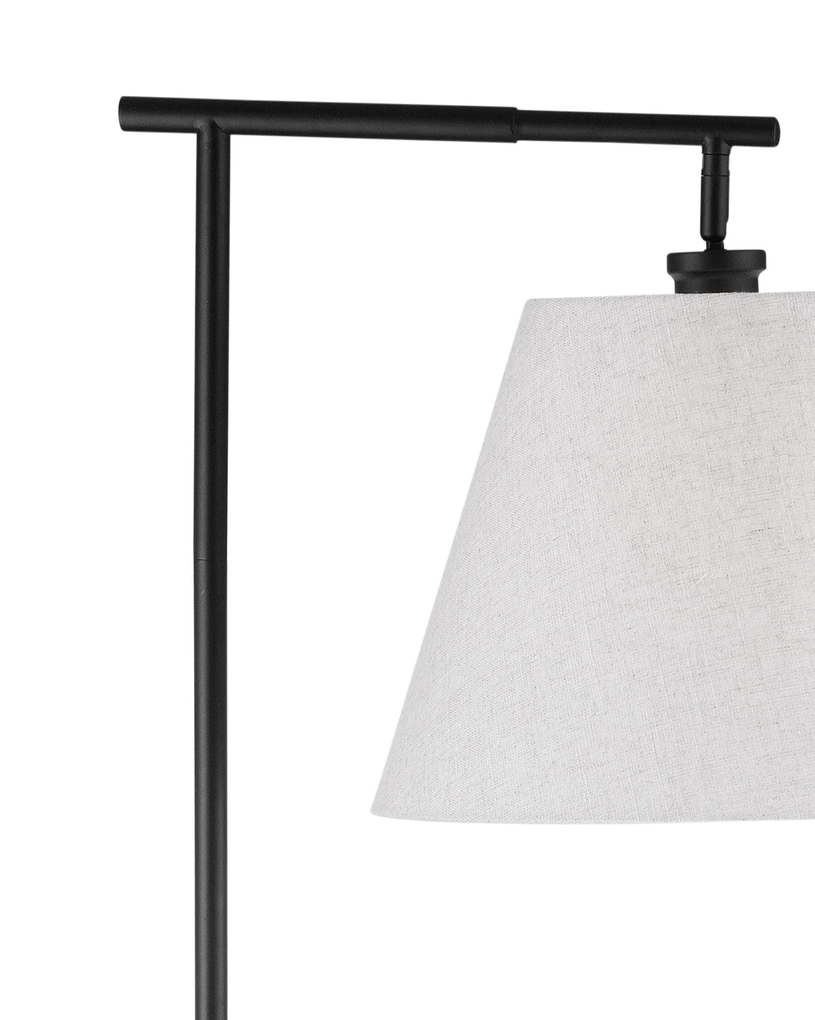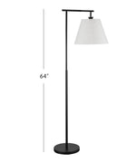The McLeen Floor Lamp showcases a sophisticated metal body paired with a crisp white tapered shade, exuding a sleek and modern aesthetic. Its matte black finish adds a touch of contemporary elegance to any room, making it a versatile addition to your home decor.
