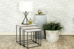 This elegant trio of nesting tables offers up a refined sophistication and durability with its classic marble tops and iron bases. Each of these three nesting tables slide beneath the other, freeing up floor space in compact rooms. Retrieve one or two when company arrives, instantly creating more tablescape for drinks and snacks. An open box-like base design with slim legs offers a modern flair to each piece. Situate them as a set or separate them to create a coordinated side table collection.