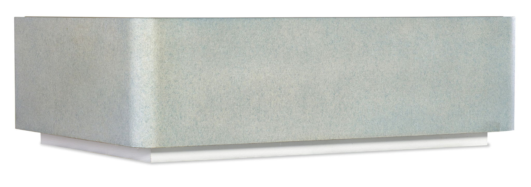 Unit price perSerene and stylish with a spa-like color scheme, the modern Atlantis Cocktail Table has a large rectangle shape, rounded corners, a painted tempered glass top, raffia-wrapped exterior and white plinth base. The top is painted in a creamy white tone, and the raffia wrap is in a pale blue tone inspired by Caribbean beaches.