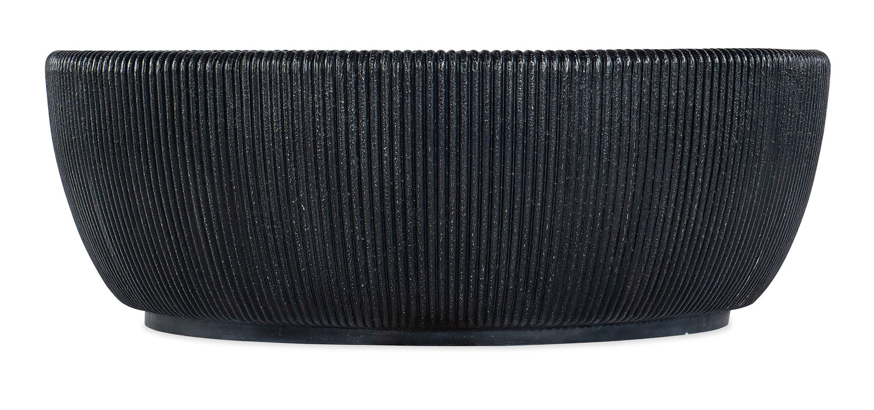Minimalist, bold and modern, the Baleen Cocktail Table features a black-and-white color palette on a round bowl shape with a ribbed exterior and white painted top. Crafted of resin, the exterior is in a black finish.