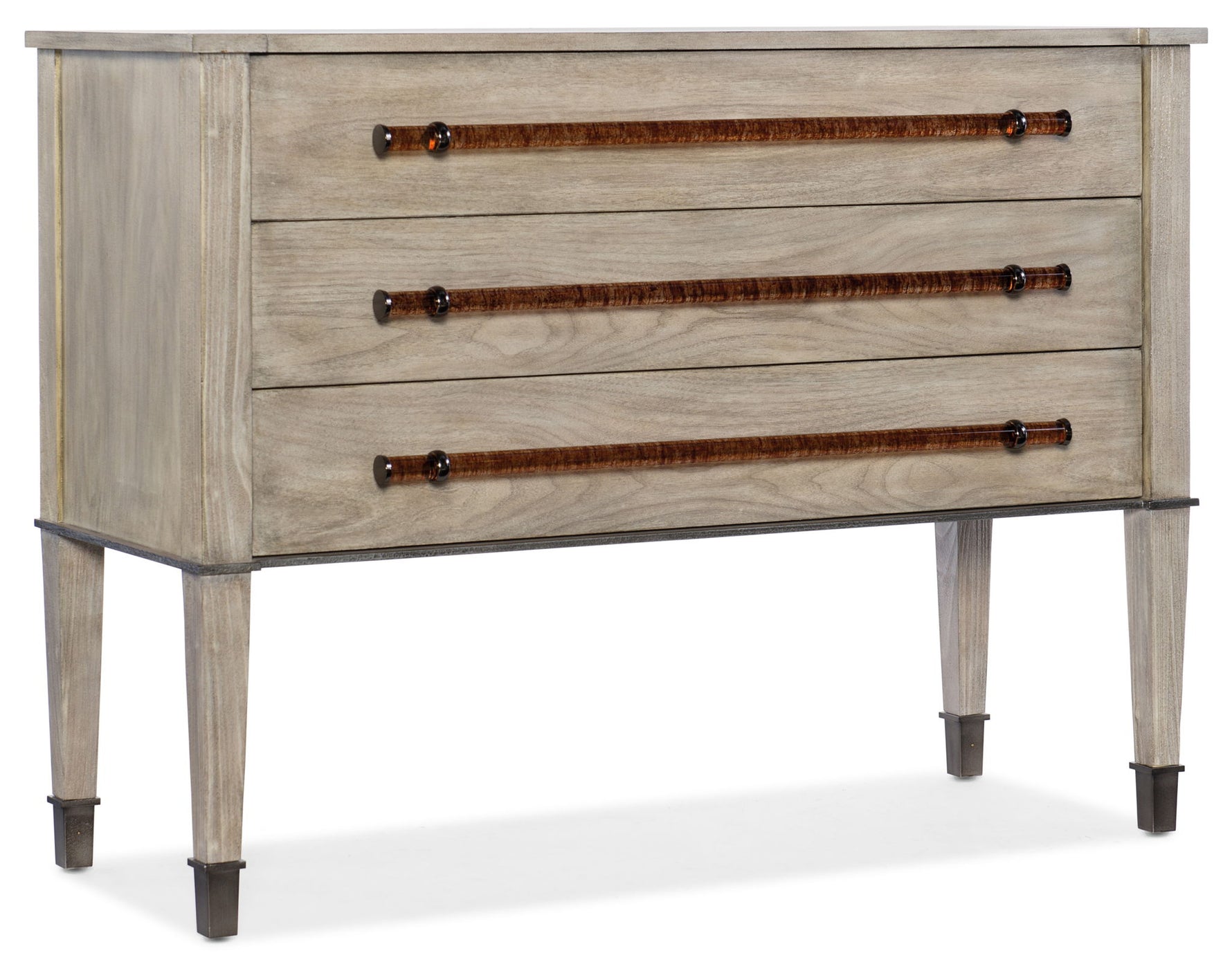 Unit price perThe tactile Micah Chest offers an intriguing mix of Black Walnut Veneers in a light finish, Lucite tortoise-shell-patterned pulls and metal caps on the shaped legs. Three drawers with brown interiors and dust bottoms. Come closer to Melange, and you will discover something unexpected, an eclectic blending of colors, textures and materials in a vibrant collection of one-of-a-kind artistic pieces.