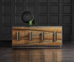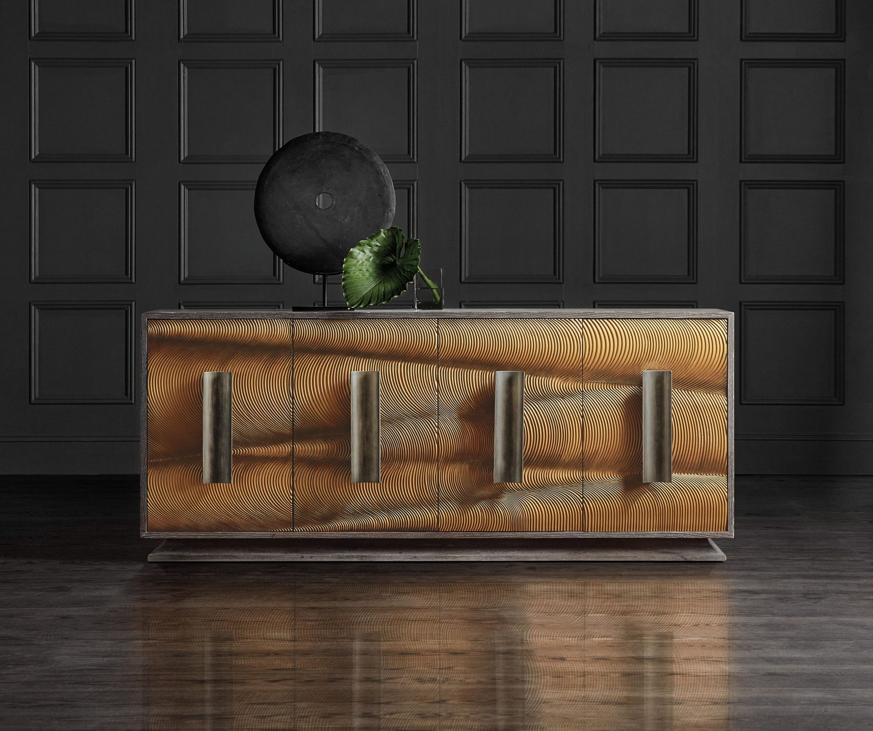 - Four doors with gold swirl motif and large curved rectangle hardware