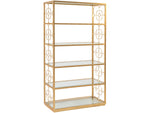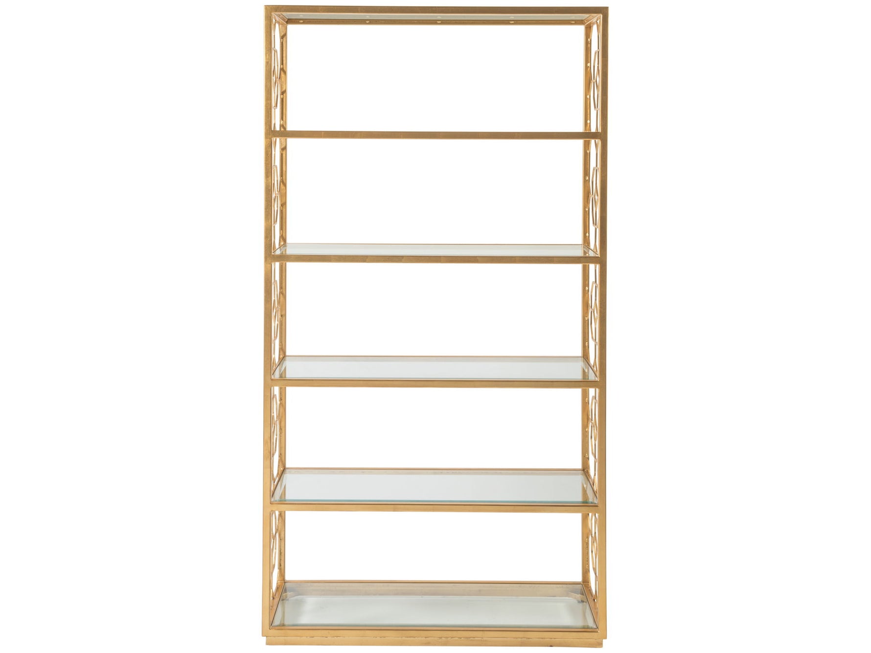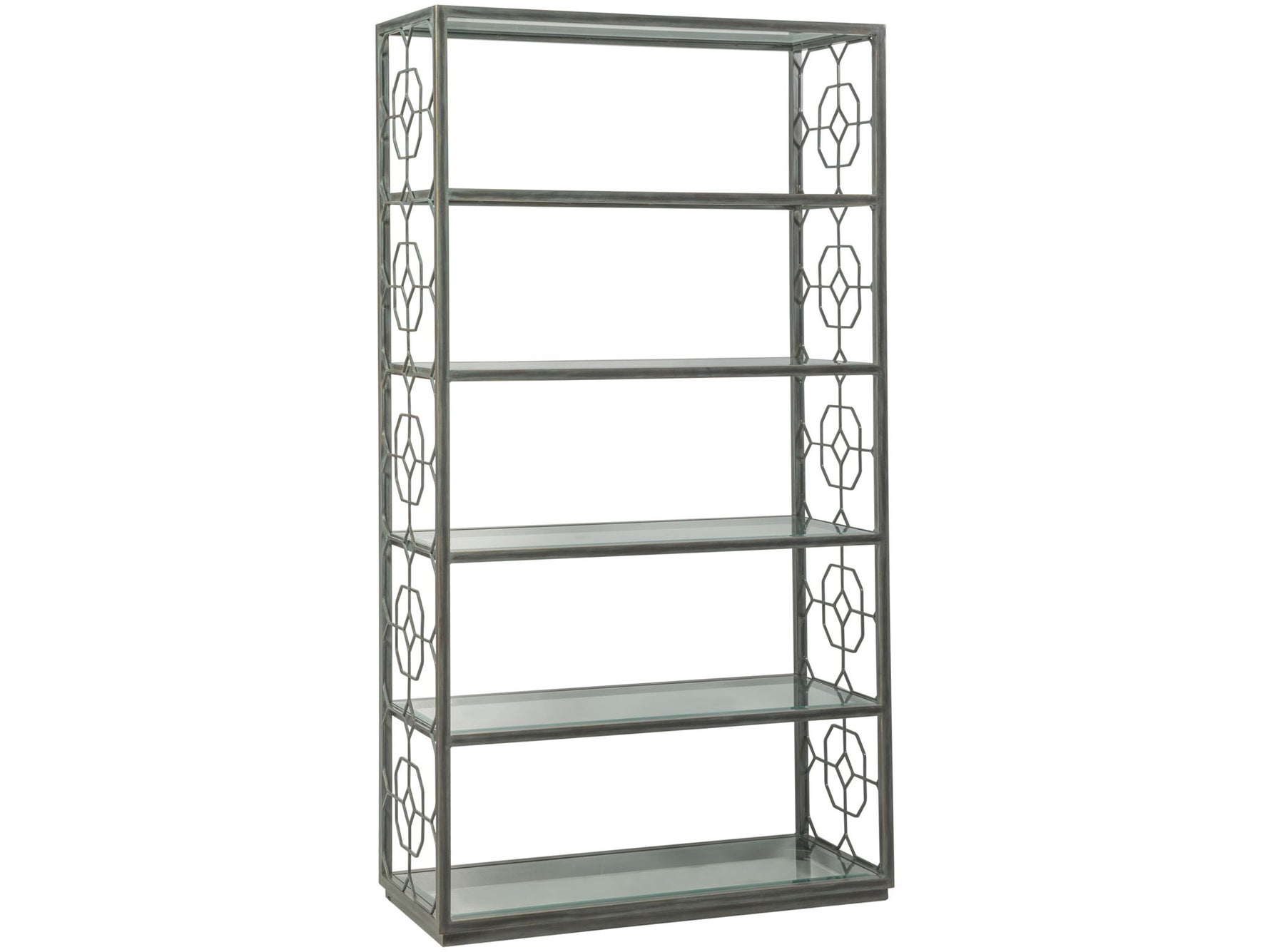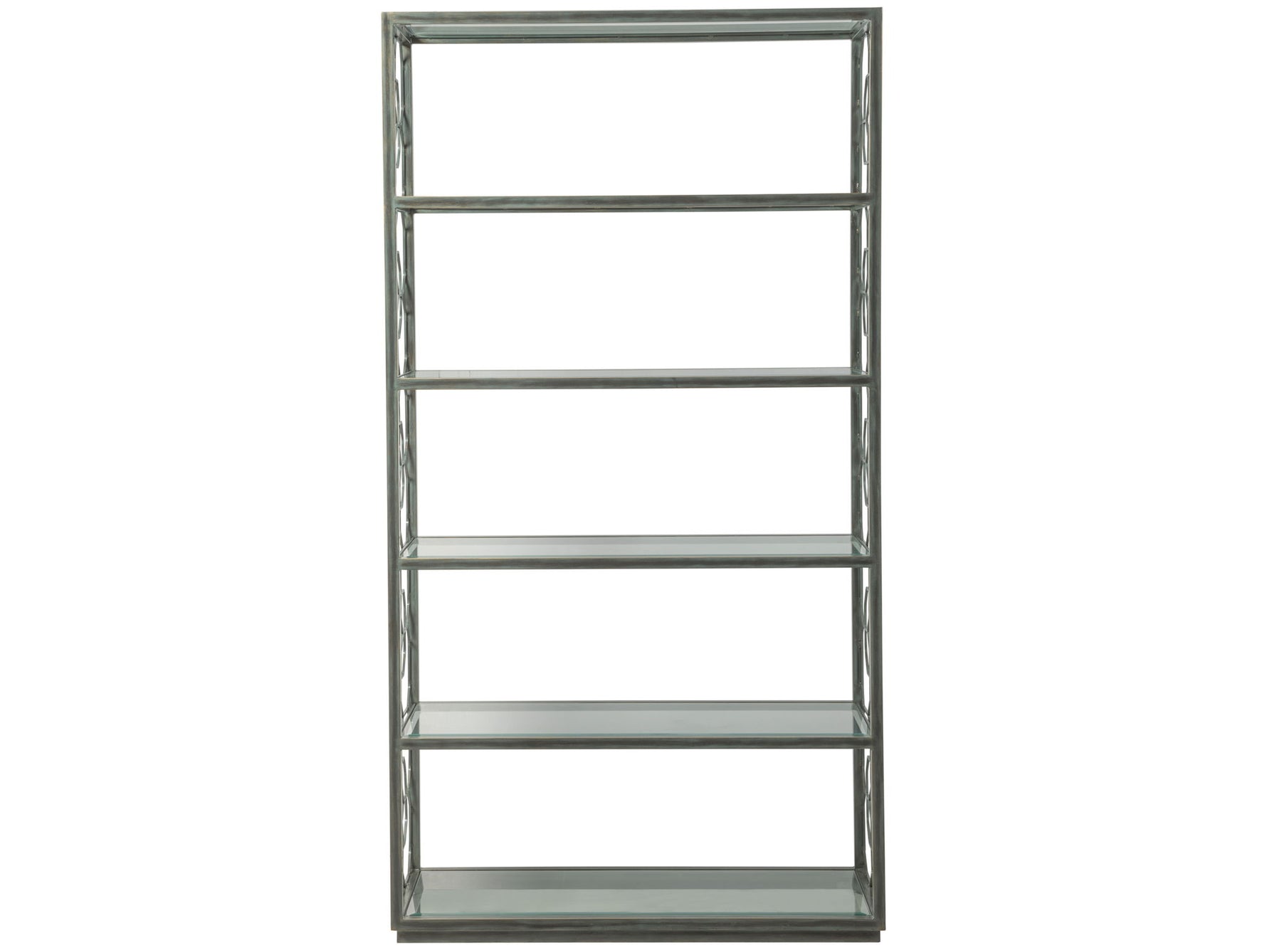 Unit price perHand-forged iron frame with six stationary, 1-inch beveled, tempered glass shelves