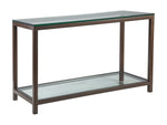 Unit price perTubular steel frame, glass top with flat polished edges, and inset glass shelf