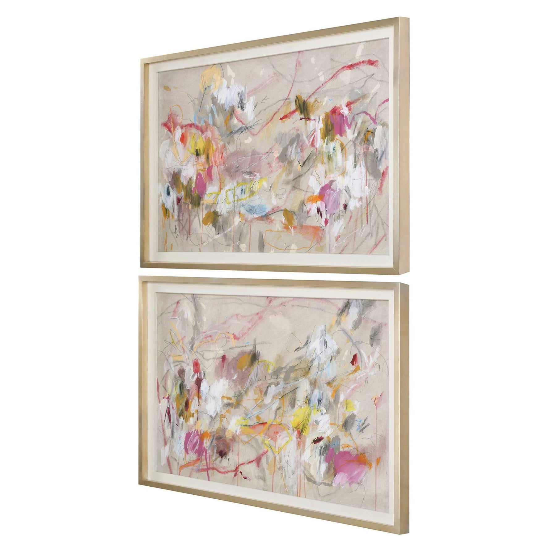 Immerse Yourself In The Vibrant Energy Of City Life With Our Metropolitan Rush, A Set Of Two Oversized Abstract Framed Prints. This Bright Color Palette Celebrates The Ceaseless Movement And Eclectic Spirit Of The Metropolis. Each Print Is Complemented By A White Linen Liner And A Brushed Champagne Silver Frame. Artwork By Maja Gunnarsdottir.