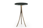 The Milo accent table embodies modern sophistication with its stunning emerald green marble top and antique brass-finished iron base. Its three-legged design, featuring hammered texture details, adds a touch of uniqueness to any room. Crafted from natural marble and hammered metal, each piece boasts its own distinctive characteristics, making it a truly one-of-a-kind addition to your space.