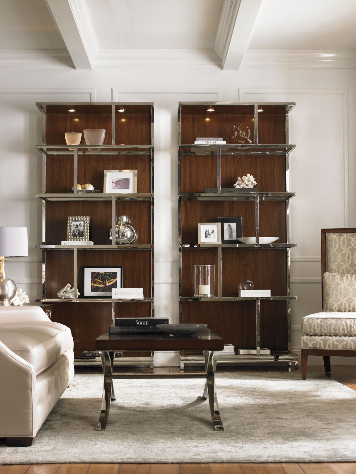 Those passionate about modern design find their inspiration in bold, imaginative styling that retains its authenticity and enduring appeal. The elegance of Walnut veneer, the figured patterns of Mappa Burl, and the brilliance of polished stainless steel impart a swagger to the chic contemporary lines of Mirage by Lexington. Refined metropolitan styling and a convergence of elements embody a lifestyle with the lure of an oasis in a world of modern design.