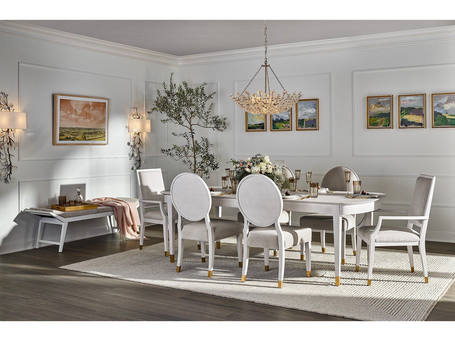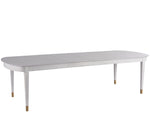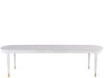 Add a warm and welcoming energy into your dining space with the Marion Dining Table, a gorgeous statement furnishing in an Alabaster finish that is embellished with soft gold metal caps on each leg.