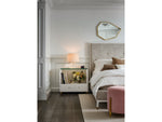A charming juxtaposition of materials, the Peony Nightstand finds seamless balance between a glass top, champagne and acrylic bar hardware and a chic White Lacquer finish. For added flair, the legs are finished in soft gold.