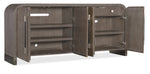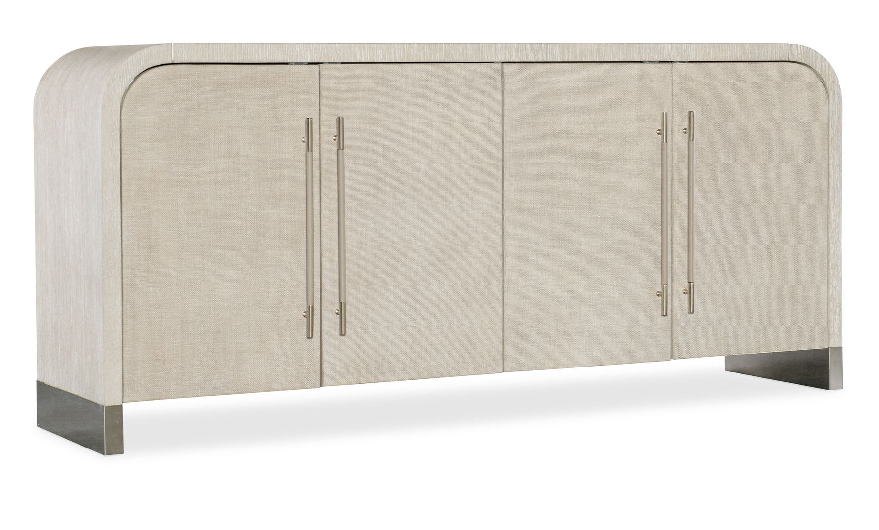 Unit price perSleek and stunning with a timeless sophistication and soft modern aesthetic, the Modern Mood Buffet combines Quartered Oak Veneers with raffia-wrapped doors, warm pewter brushed metal bar pulls accents. The Diamond Finish has crystal-like alabaster and pewter hues, offering a serene style. Features include 4 doors with soft-close hinges and magnetic catches, two adjustable wood shelves behind each pair of doors, ventilated back panels and wire management holes in the back panel and a 3-plug electrical outlet behind the right-side doors.