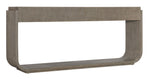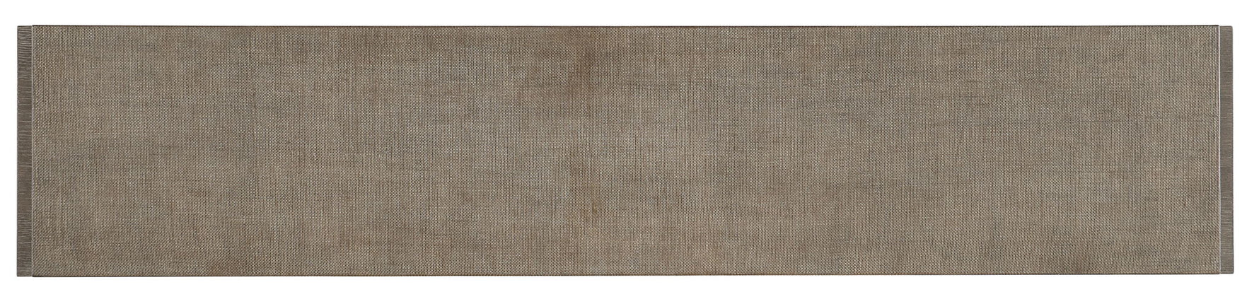 Unit price perSymmetrical and timeless with a luxe mixture of materials, the soft and sophisticated Modern Mood Console Table has a narrow rectangle shape with rounded sides and a raffia-wrapped drawer front and top. Crafted of Quartered Oak Veneers with wire-brush detailing, it is finished in the serene Diamond finish, accented by round knobs in a warm pewter finish wrapped in leather.