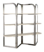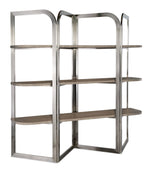 Unit price perArchitectural and artistic with a luxe mixture of materials, the Modern Mood Etagere has three fixed shelves crafted of wire-brushed Quartered Oak in the Mink finish with dark, earthy brown hues with notes of black. The shelves are surrounded by a shaped brushed metal frame in a warm pewter-colored finish. Finished all the way around, the shelf can be used from either side and can float in a room.