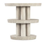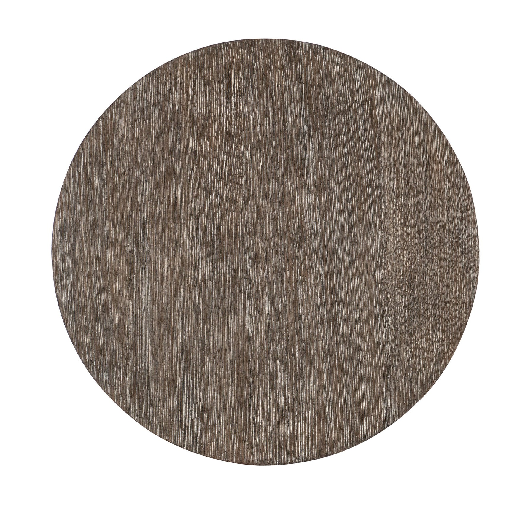 With a casual, natural, almost primitive look, the Modern Mood Round Side Table is a three-tiered design with three round columns as the base. Crafted of Oak Veneers with wire-brush detailing for a tactile appeal, the table features the Diamond Finish with crystal-like alabaster and pewter hues, delivering a soft sophistication.