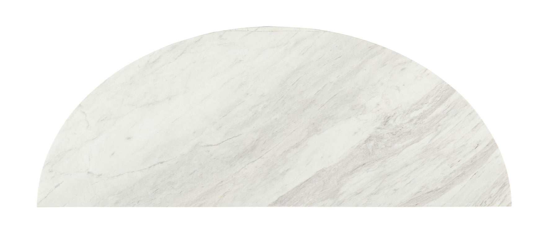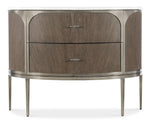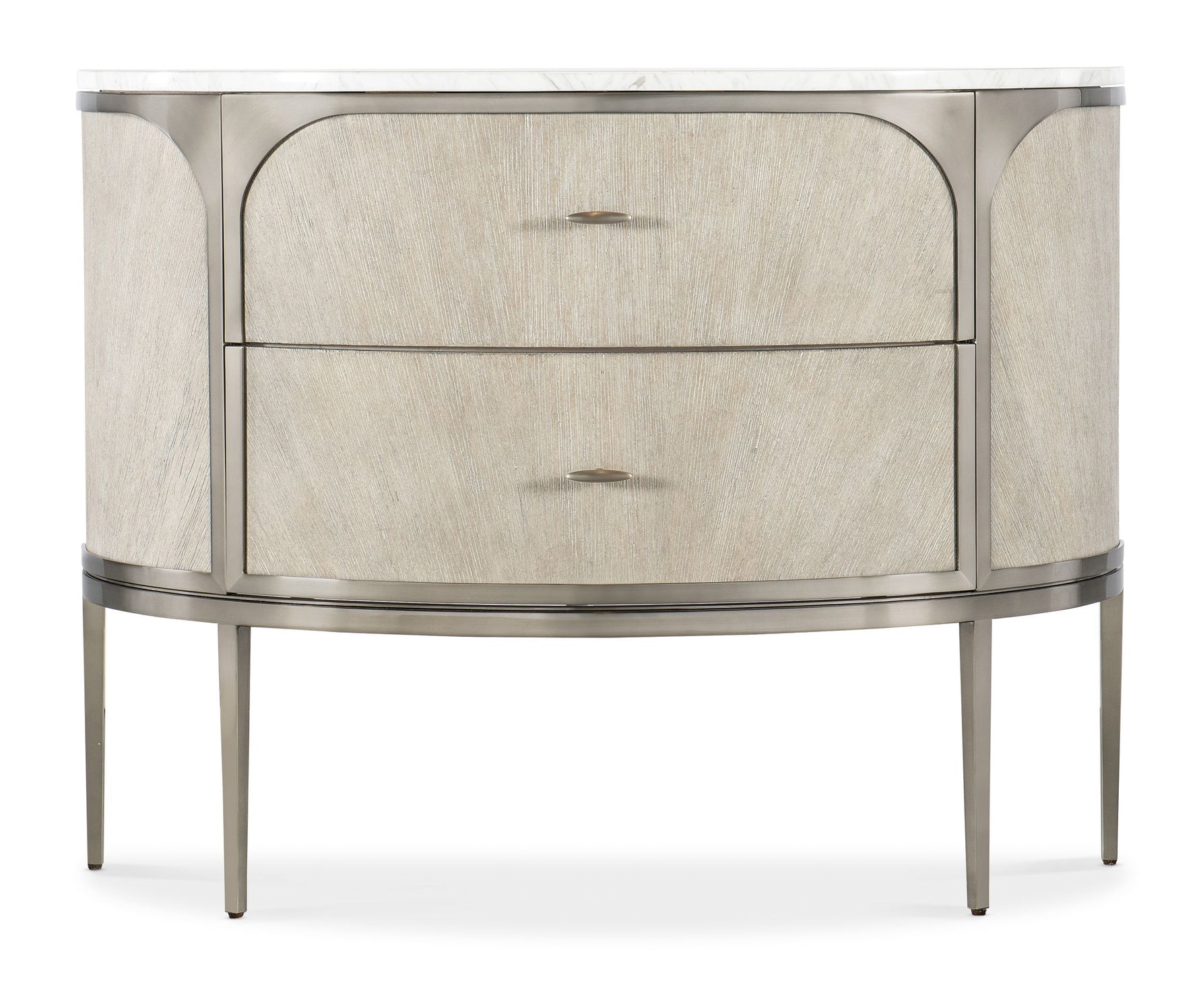 Unit price perArchitectural and timeless with a luxe mixture of materials, the Modern Mood Nightstand is a statement piece. Featuring a demilune shape and two self-closing drawers, the nightstand has a metal frame, legs and slender pulls and a white and gray marble top. The case is crafted of Oak Veneers and finished in the dark Mink color with wire-brush detailing.