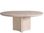 The Round Dining Table creates an intimate and inviting dining experience. Its light, welcoming finish enhances the classic round silhouette, fostering a warm and welcoming atmosphere for gatherings and meals.