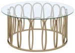 This round table features a clear tempered glass top supported by a durable metal frame. The base is finished in a striking electroplated chocolate chrome, providing a deeper, rich brass tone. With its sleek design, this coffee table is an ideal addition to any living room or lounge area, offering both elegance and stability. The metal frame provides a modern touch, while the tempered glass top ensures long-lasting durability and ease of maintenance.